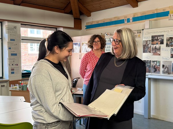 Beim Besuch der Bildungsministerin wurde deutlich, wie engagiert die Schülerinnen und Schüler an ihren Projekten arbeiten. Sie stellten ihre Ideen vor und berichteten von ihren Erfahrungen mit dem Frei-Day. Die Ministerin zeigte sich beeindruckt von der Motivation der Lernenden sowie vom pädagogischen Konzept der Schule. Besonders hervorgehoben wurde die Möglichkeit für Schülerinnen und Schüler, Verantwortung für ihr eigenes Lernen zu übernehmen und dabei wichtige Zukunftskompetenzen zu entwickeln.
