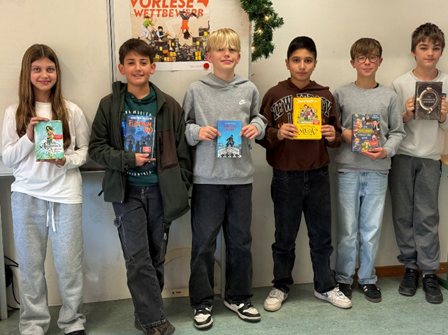 Nach spannenden Vorentscheidungen innerhalb der 6. Klassen, hatten sich je Klasse zwei Kinder für das Schulfinale qualifiziert. Eine Schülerin und fünf Schüler lasen aus selbstgewählten Büchern vor einer Jury bestehend aus vier Lehrkräften und drei Schülern. Bester Vorleser wurde Louis-Gino Lifke aus der Klasse 6c, der mit einem gut betonten Vortrag die Jury von sich überzeugte. Als Anerkennung für ihre guten Leseleistungen wurden alle Endrundenteilnehmer mit einem Buchpreis ausgezeichnet.
